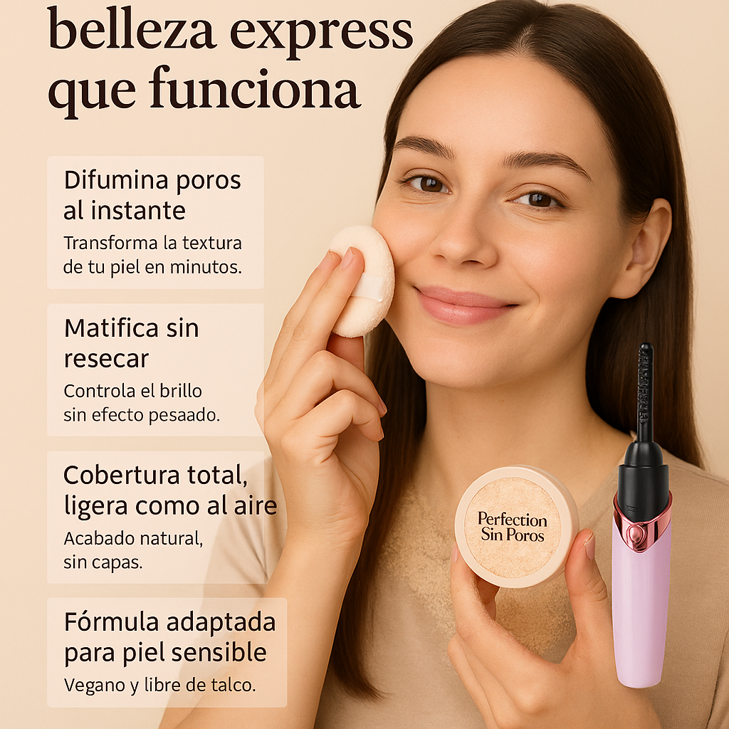Dile adiós a los poros visibles y a las imperfecciones. Tu piel será más uniforme y radiante, ¡todo en solo 5 minutos!