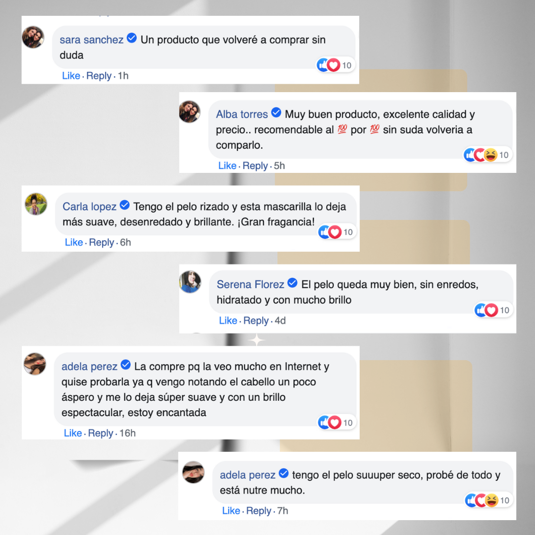 ⭐️⭐️⭐️⭐️⭐️ "¡Mi cabello nunca había estado tan suave! Se siente como un tratamiento de salón en casa." – Laura M.